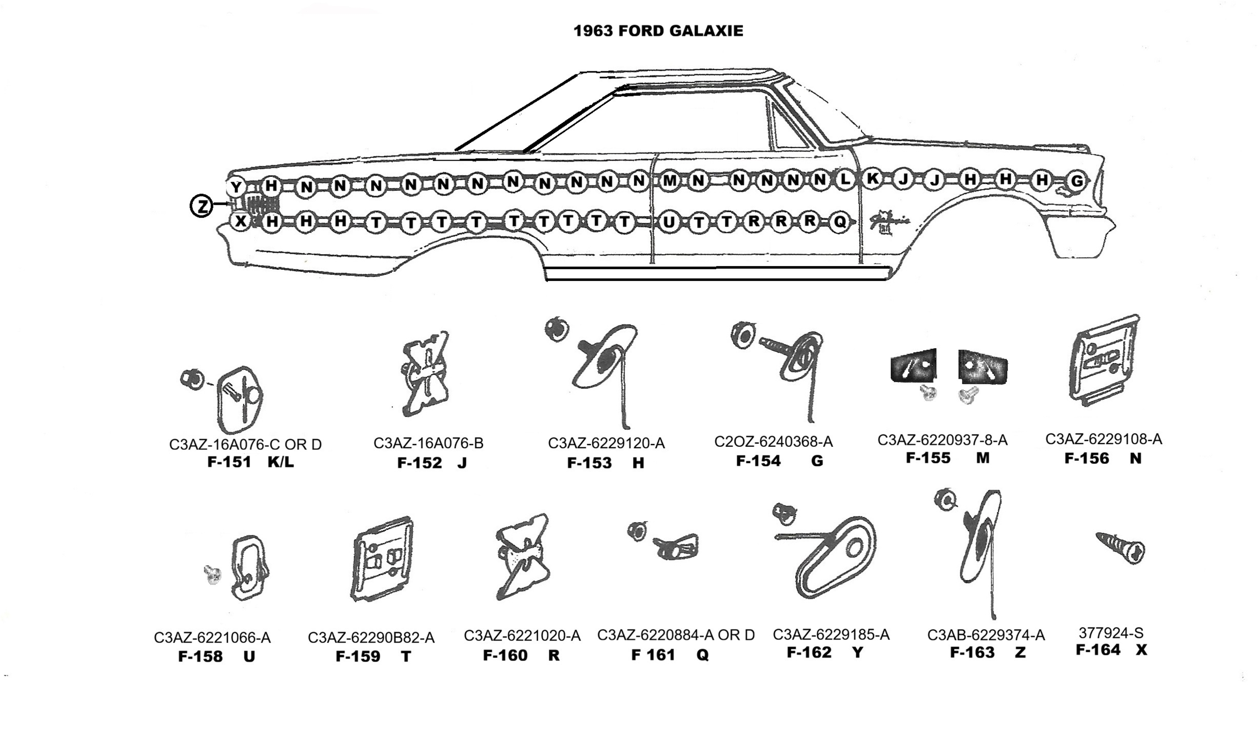 Fits: 1963 Ford Galaxie, 2 DOOR BODY CODES: 62A, 63B, 63C, 65A, 65B, 76A AND 76B