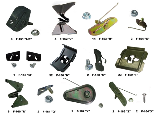 Excellent reproduction of the hard-to-find 1963 Ford Galaxie side molding clips. Kit includes all 126 moldings clips to for the body moldings on both sides of your 2 door coupe or convertible.