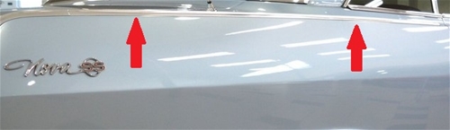 - Templates locate the rear quarter peak SS body moldings exactly